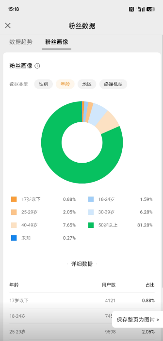 - 粉丝年龄:大于50岁为主