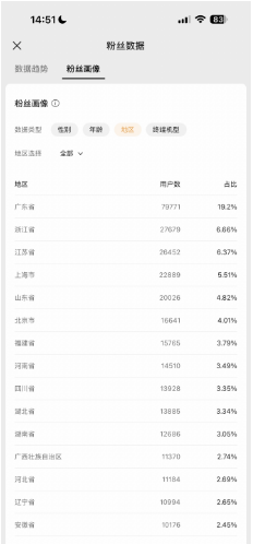 - 粉丝分布:全国分散